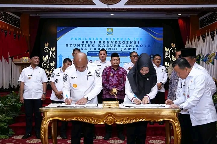 Deteksijambi.com ~ TEBO JAMBI – Kabupaten Tebo kembali mencatatkan prestasi dalam bidang pembangunan kesehatan masyarakat dengan meraih penghargaan kategori “Dukungan Regulasi Daerah Pelaksanaan Aksi Konvergensi Stunting” pada kegiatan Penilaian Kinerja Aksi Konvergensi Stunting Kabupaten/Kota se-Provinsi Jambi Tahun Anggaran 2024.