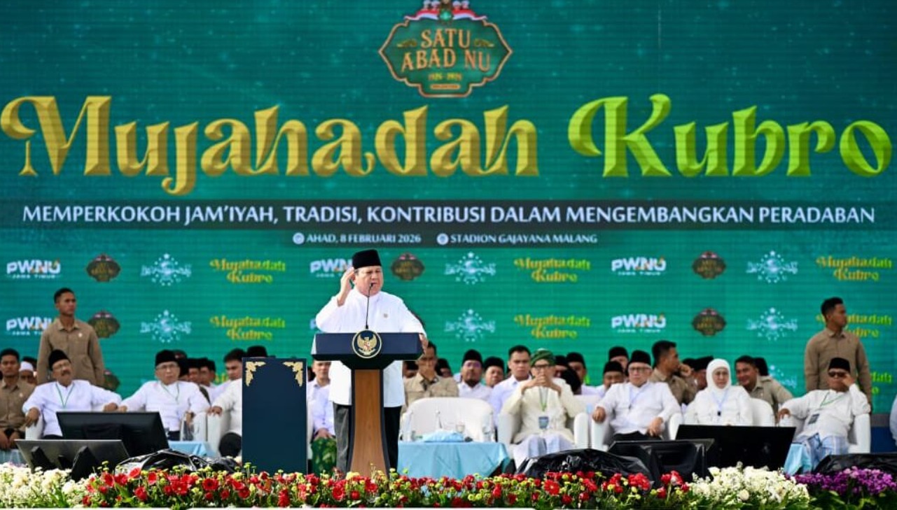 Deteksijambi.com – Malang – Presiden Prabowo Subianto menegaskan komitmen pemerintah untuk menegakkan keadilan dan menghadirkan kemakmuran bagi seluruh rakyat Indonesia sebagai amanat utama Undang-Undang Dasar 1945. Komitmen tersebut disampaikan Presiden dalam sambutannya di Mujahadah Kubro Satu Abad Nahdlatul Ulama (NU) yang digelar di Stadion Gajayana, Kota Malang, Provinsi Jawa Timur, pada Minggu, 8 Februari 2026.