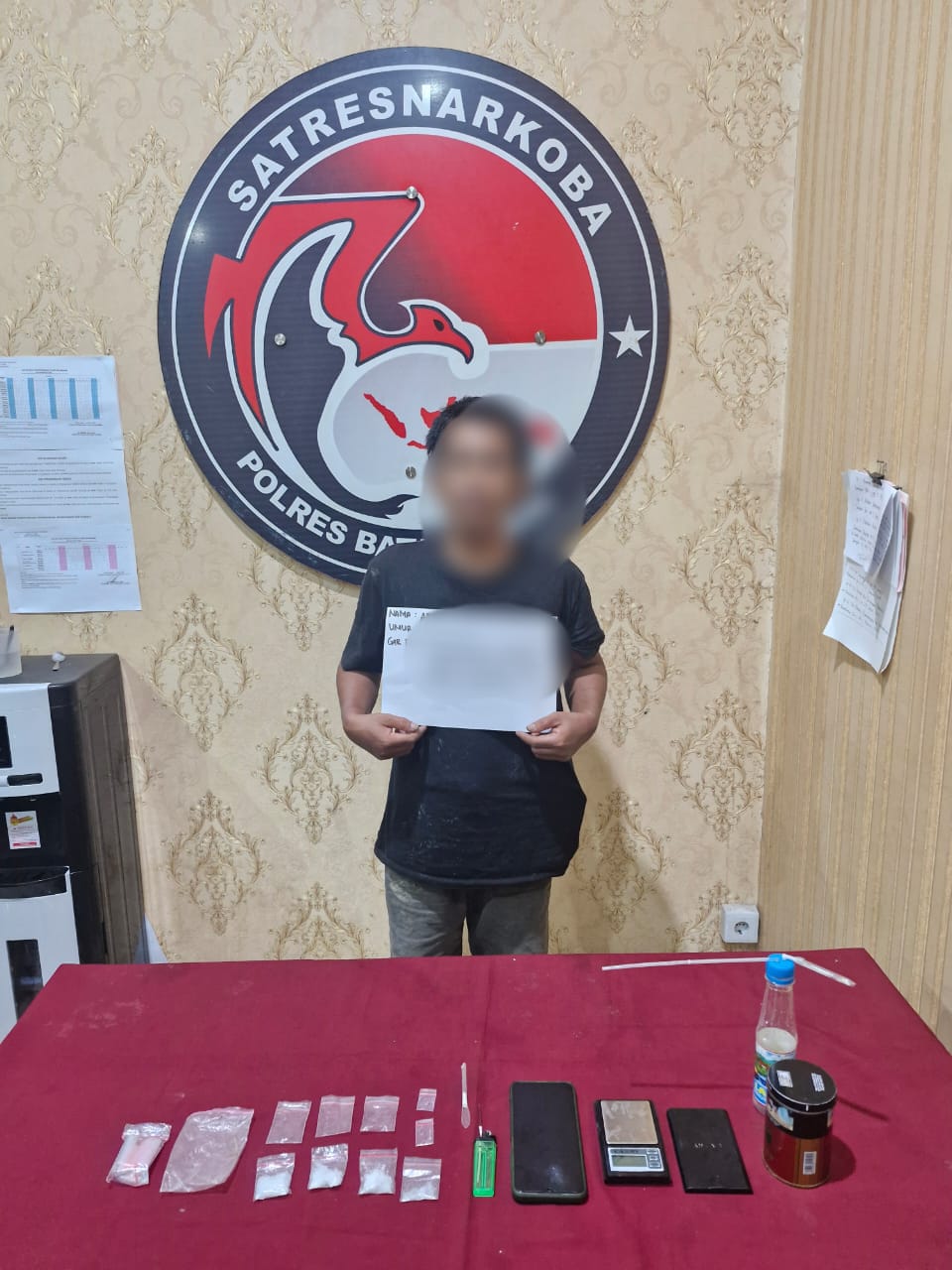 Pelaku berinisial A, 39 tahun, warga RT.012 RW.003 Kel. Teratai Kec. Muara Bulian Kab. Batanghari. A diamankan bersama barang bukti berupa 4 paket sedang plastik klip bening transparan berisikan serbuk kristal warna putih diduga narkotika golongan I bukan tanaman jenis sabu dengan berat bruto 11 gram.