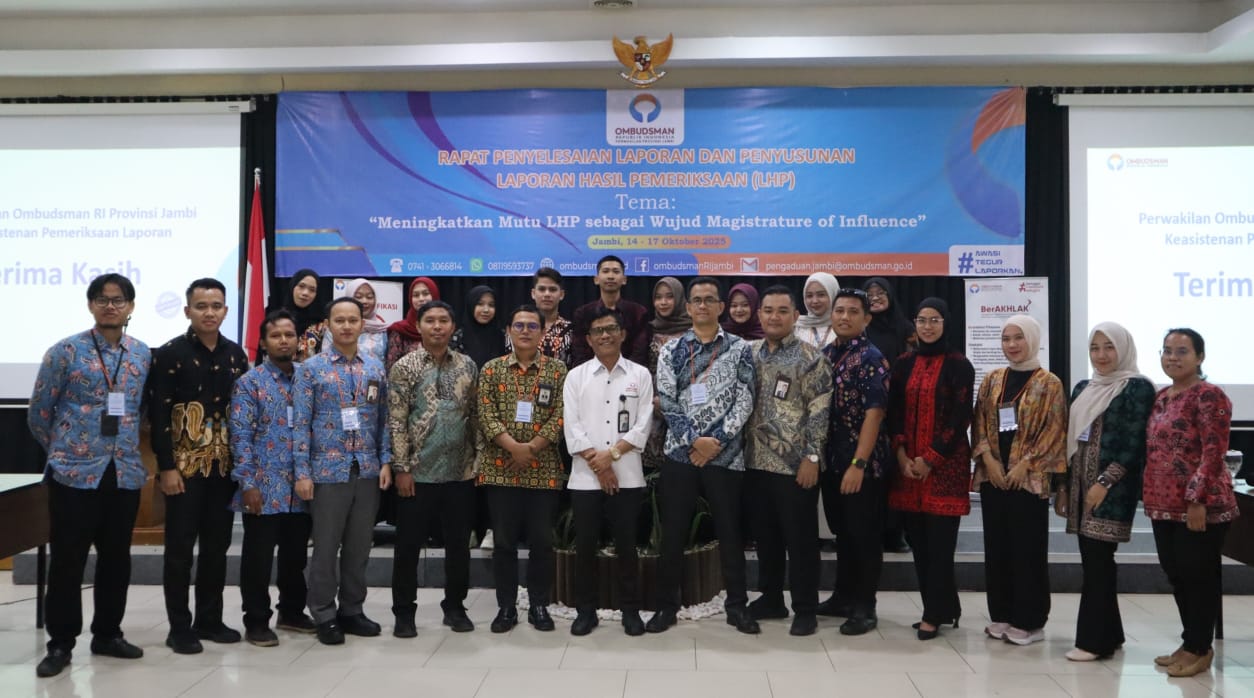Deteksijambi.com ~ JAMBI – Ombudsman Jambi mengadakan kegiatan Rapat Penyelesaian Laporan dan Penyusunan Laporan Hasil Pemeriksaan (LHP) pada 14-17 Oktober 2025 di Wiltop Hotel Jambi. Acara ini diikuti oleh Asisten Pemeriksaan Laporan di Ombudsman Jambi. Acara ini dibuka oleh Kepala Perwakilan dan mengusung tema ‘Meningkatkan Mutu LHP Sebagai Wujud Magistrature of Influence’.