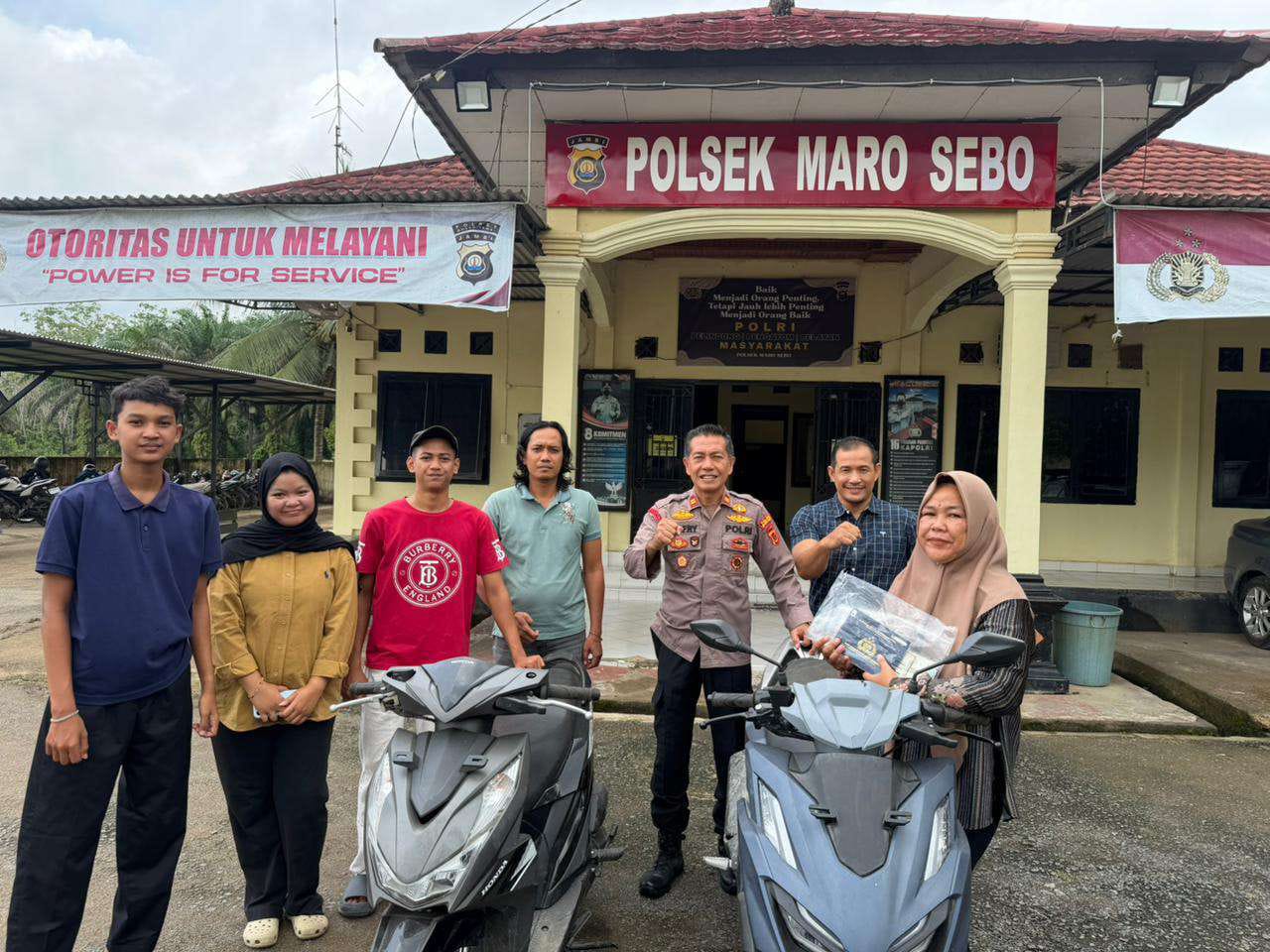 Deteksijambi.com ~ Muaro Jambi – Polsek Maro Sebo Polres Muaro Jambi menyerahkan satu unit kendaraan bermotor yang sebelumnya diamankan sebagai barang bukti hasil tindak pidana pencurian oleh pelaku yang telah diamankan , dan sempat kabur, karena gerak cepat Polsek Maro Sebo kurang dari 24 Jam residivis pelaku RR dan FA berhasil ditangkap kembali .