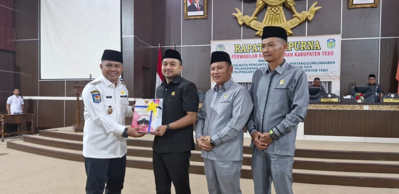 Deteksijambi.com ~ TEBO – Rapurna DPRD Kabupaten Tebo dalam Rangka Penyampaian Nota Pengantar Ranperda tentang Pertanggungjawaban Pelaksanaan APBD TA 2024 dan Nota Pengantar 6 (enam) Ranperda Kabupaten Tebo TA2025.