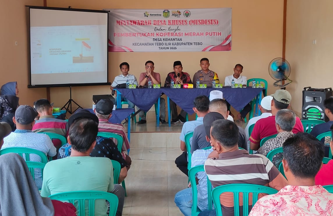 Deteksijambi.com ~ TEBO ILIR – Desa Kemantan, Kecamatan Tebo Ilir, baru saja menorehkan prestasi membanggakan. Melalui sebuah Musyawarah Desa Khusus (Musdesus) yang sukses digelar, Desa Kemantan telah mendirikan Koperasi Merah Putih Kemantan – sebuah langkah nyata menuju desa sejahtera. Keberhasilan ini merupakan bukti nyata komitmen dalam meningkatkan perekonomian masyarakat desa.