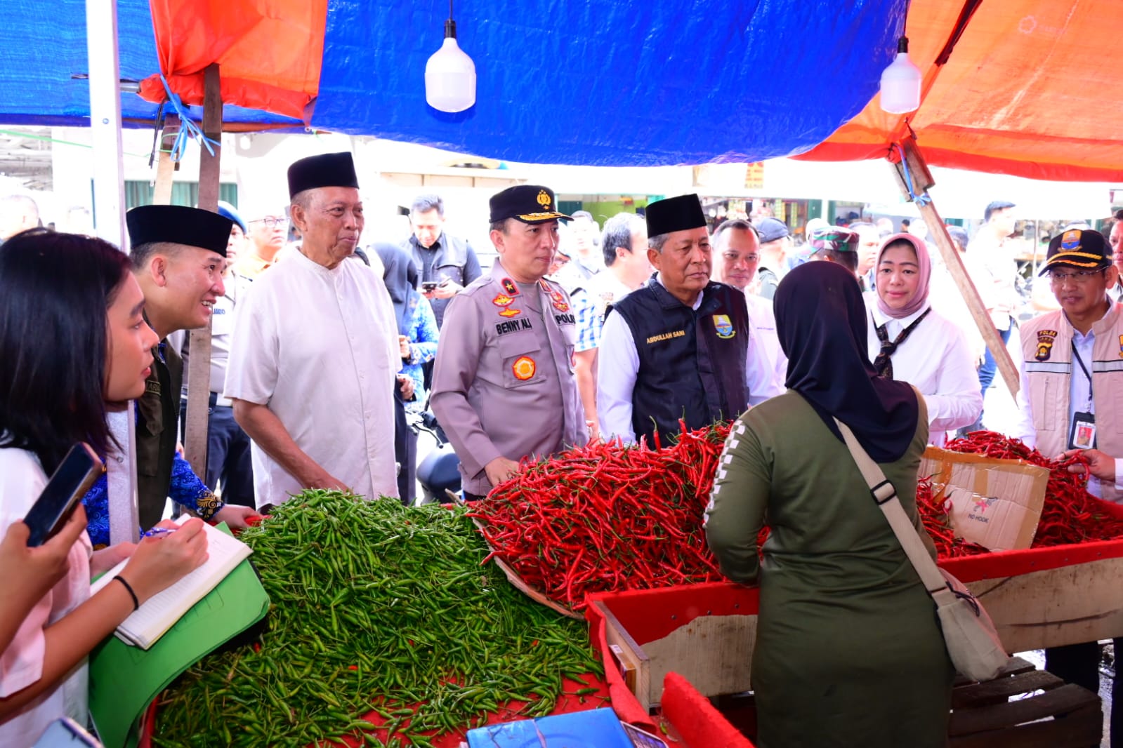Deteksijambi.com ~ Jambi — Wakapolda Jambi Brigjen Pol. B. Ali bersama Tim Satgas Pangan melaksanakan inspeksi mendadak (sidak) di Pasar Tradisional Angso Duo, Kota Jambi, pada Rabu (18/2/2026) Dalam kegiatan tersebut, Wakapolda Jambi turut didampingi Wakil Gubernur Jambi Abdullah Sani, Danrem 042/Garuda Putih Kolonel Inf Nyamin, Dirreskrimsus Polda Jambi Kombes Pol. Taufik Nurmandia, serta Tim Satgas Pangan dan TPID Provinsi Jambi.